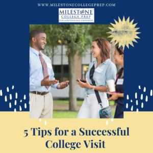 College visits are a great way to learn more about a college and determine if it is a good fit. During a visit, you can see different locations on campus – such as dining halls, classrooms, the library, and dorms – discover majors of interest, and get a feel for the general “vibe” of the school.